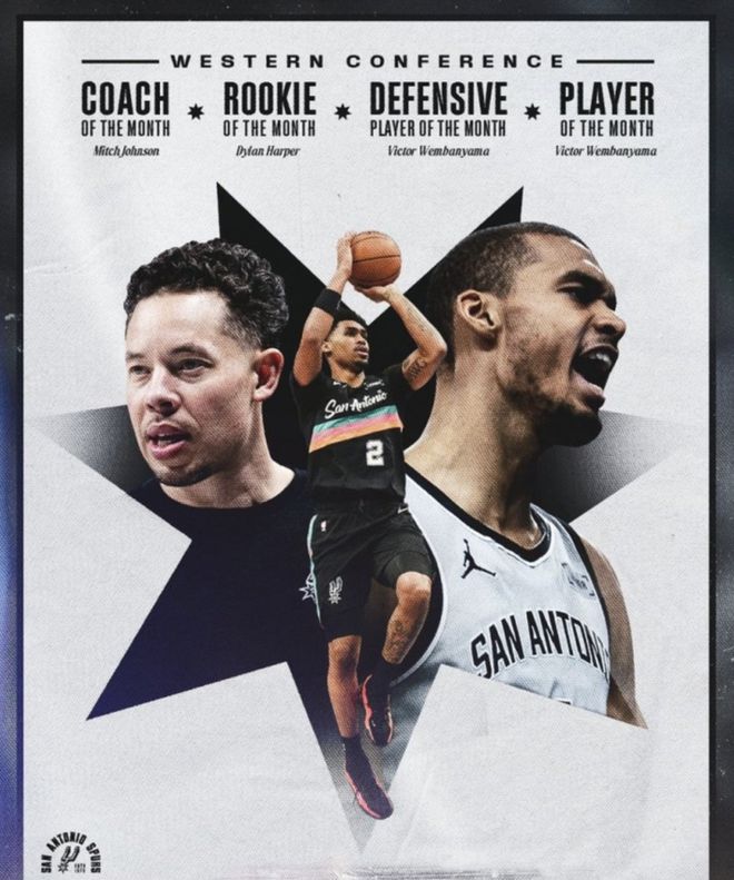 这些荣誉是对马刺这批年轻球员在场上强势表现的最好肯定,在此前的三连胜中,除了轻取东部球队76人和活塞之外,他们赢下了一场硬仗,那就是大比分逆转战胜快船。那场比赛,半场结束时,快船最多领先了25分,但最终马刺完成逆转,创造了队史最大被逆转分差。终场哨响后,文班亚马都难掩激动之情,泪洒赛场。